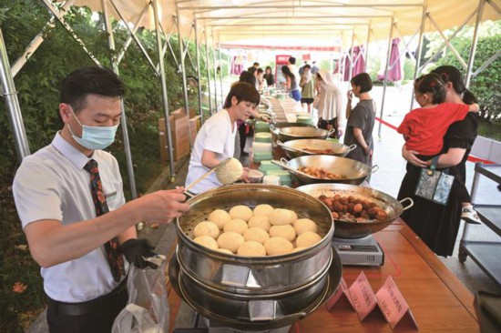 7月22日下午4時,在嘉興市南湖區凌公塘路,一家老牌餐廳門口擺起了涼菜、熟食、點心攤位,紅燒獅子頭、椒鹽大排、鹵牛肉等“硬菜”以及各類夏季可口的涼拌菜肴紛紛上攤,不少市民挑選好喜歡的菜肴,打包回家。 2025年夏天,南湖區多家知名餐飲企業悄然將昔日深藏于雅致包間內的招牌菜肴移至街頭巷尾進行售賣?!?/a>