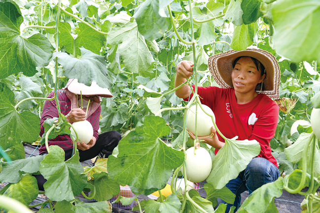 6月10日,在位于金華市武義縣履坦鎮的一處大棚里,一只只“綠菇”甜瓜掛滿藤蔓,村民忙著采摘供應市場。 “綠菇”甜瓜是金華市農科院科技特派員從新疆引進的新品種,具有水分足、口感細膩等特點,適合該市土壤氣候種植?!?/a>