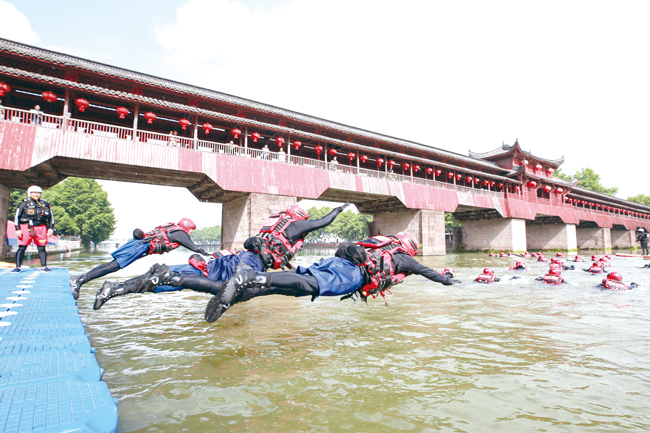 日前,一場消防水域救援技術實戰培訓在金華武義江水流湍急的江面上舉行,來自金華各地的40名消防指戰員參加了實訓。 汛期來臨,為錘煉消防員“水上功夫”,鍛造水上救援尖兵,從5月26日起,金華市消防救援支隊推出了水域救援技術培訓?!?/a>