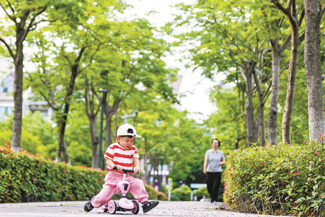 6月4日傍晚,寧波市江北區雙古渡公園沉浸在溫柔暮色之中。 園內,市民或沿著步道悠閑漫步,或坐在長椅上欣賞美景,孩童嬉笑奔跑,歡聲笑語回蕩在空氣中?!?/a>