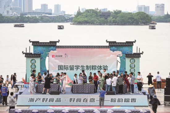 5月31日,在嘉興南湖景區望湖廣場,來自嘉興大學、嘉興南洋職業技術學院的15名留學生代表參與端午制粽體驗,沉浸式感受中國傳統節日魅力。(孟多多)?!?/a>