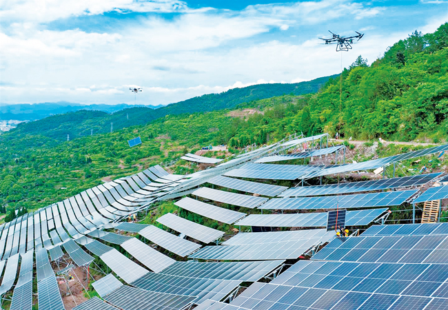 5月19日,在金華永康市方巖鎮先盆村的50兆瓦農光互補發電(永康方巖)項目現場,數架無人機在空中往返穿梭,將一塊塊光伏板精準吊運至安裝點位。據介紹,山地地形靠傳統人工搬運耗時費力,引入無人機運輸后,單機日均完成200~300塊光伏板搬運,搬運成本較人工降低一半?!?/a>