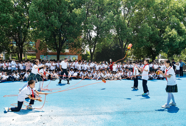 日前,金華市金東區一所小學的學生在該區紅十字會應急救援隊志愿者的指導下,學習如何使用繩索等工具進行溺水救援。夏季來臨,該校通過告家長書、手抄報、短視頻、主題隊會等形式,結合漫畫、視頻和案例對學生進行防溺水安全教育,提高他們的安全防護意識?!?/a>