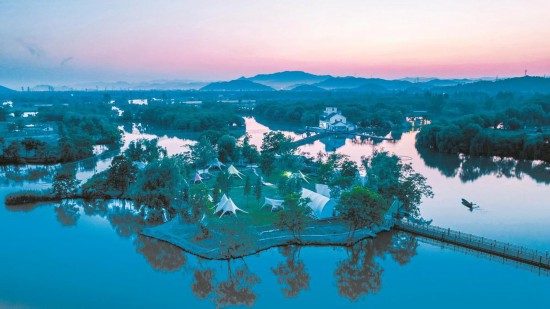 近日,浙江省林業局調整發布全省省級重要濕地名錄,紹興諸暨市白塔湖國家濕地公園名列其中。圖為近日傍晚拍攝的濕地公園,靜美如畫?!?/a>