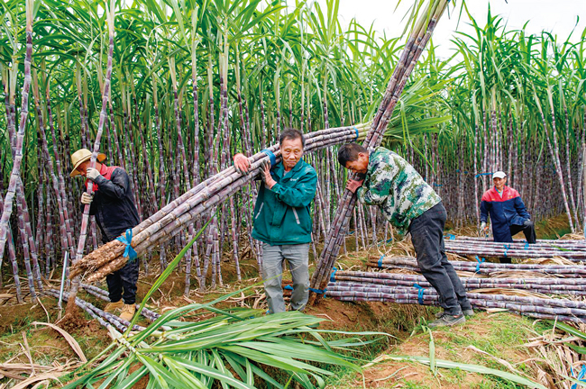 10月22日,金華蘭溪市女埠街道匯潭村甘蔗田里,農民在采收甘蔗。霜降時節,金華各地農村處處呈現收獲農作物的忙碌景象?!?/a>