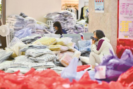 10月20日,嘉興秀洲區洪合鎮一處服裝市場內一片繁忙,店主們打包發貨一氣呵成。近日氣溫驟降,加之“雙11”購物節臨近,洪合鎮以毛衫和毛紡制品為主的服裝產業開始進入一年之中最忙碌的階段?!?/a>