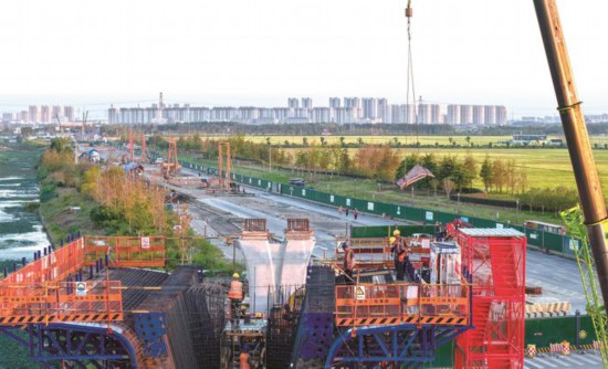 10月11日,建設中的104國道紹興東湖至蒿壩段改建工程(上虞段)穿過東關街道金色的稻田。該項目總投資44.6億元,是紹興市城市快速路網體系“一環六橫八縱三連”中的“一橫”?!?/a>