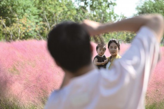 10月11日,在嘉興市秀洲區新塍塘綠道百畝花田,大片的粉黛亂子草如約綻放,一抹粉色如霧如海,微風拂過,泛起層層“浪花”,不少市民來這里打卡留影,感受這份秋日的浪漫。(馮玉坤)?!?/a>