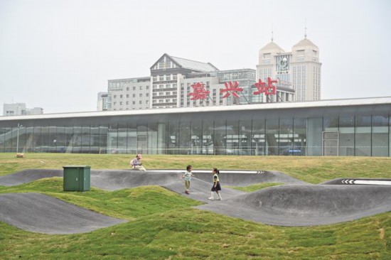10月13日下午,嘉興火車站南廣場波浪形坡道上,大人帶著孩子在游玩。這條波浪道是新近設置的,可供平衡車、滑板愛好者練習,吸引了市民來這里散步、休憩、遛娃、打卡?!?/a>