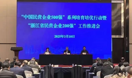 近日,2025年我省“中國民營企業500強”系列培育培優行動暨“浙江省民營企業200強”工作推進會在杭州召開。【詳細】