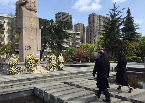 4月1日,有不少居民帶著孩子前來緬懷他。志愿者們紛紛為王偉送去鮮花,向王偉像鞠躬,深切緬懷這位為了國家獻出年輕生命的?招l士。