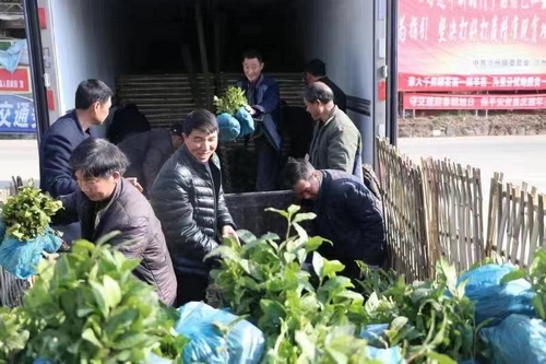 2019年3月,50萬株“白葉一號”扶貧苗抵達青川縣沙洲鎮青坪村。安吉縣委宣傳部供圖