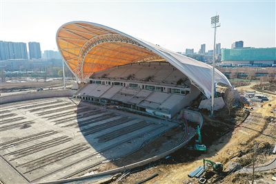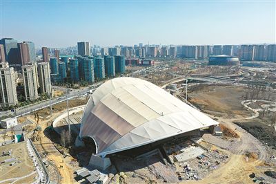 1月18日下午,大運河亞運公園“杭州傘”——杭州亞運會曲棍球場的最后一塊屋面膜安裝完成。至此,杭州最大的一把“傘”撐開了,“杭州傘”首次以完整的油紙傘形狀面向公眾。