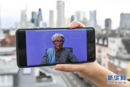 這是1月21日在德國法蘭克福拍攝的在此地舉行的歐洲中央銀行貨幣政策會議后,歐洲央行行長拉加德出席新聞發布會的視頻直播畫面。(逯陽)
