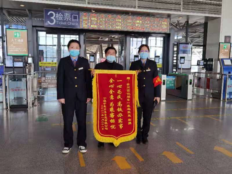 2月3日,鐵路寧波車務段臺州站收到了一面錦旗,一位旅客專門乘坐高鐵來感謝車站工作人員。