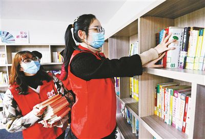 為豐富在寧波過年外來人員的業余文化生活,2月6日,鄞州寧廣社區在圖書室設立愛心圖書吧,留甬過年的轄區工地建設者和周邊外來務工人員,可以在假期的每天上午到愛心圖書吧讀書、借閱、喝茶。圖為志愿者在整理圖書。