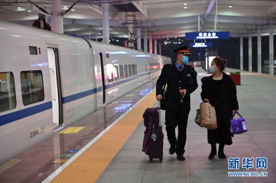 2月10日,唐忠洪與妻子周靖云離開重慶北站列車站臺。