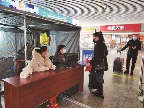 目前,臺州火車站每日客流量為5000人左右,初五后將迎來返程高峰。為了保障廣大旅客的安全,臺州火車站防疫點每天都有來自椒黃路三區的60余名黨員干部,輪流在售票口、進站口和出站口等3個點位值班,從早上5時50分開始,到晚上11時最后一趟列車到站結束,精準防控,做到檢測“不漏一人”。他們的忙碌與堅守,讓這個春運更加“平安、有序、溫馨”。