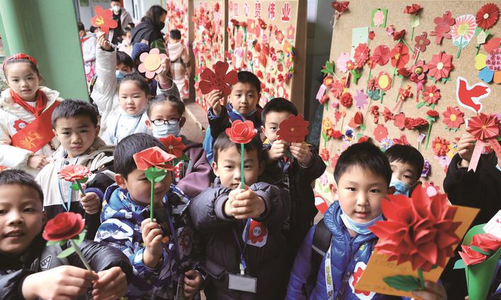 在校門口,每一位進校的學生和老師都收到了一份新年祝!〖t花,印有“好學、健康、快樂、自信、陽光、誠信、進取、創新、博學、勤勉”的小紅花,不僅是對新學期的祝福,也讓師生們感受到了回歸校園的溫暖。同時,孩子們還親手制作漂亮的小紅花,寫上對中國共產黨的祝福語,掛在學校紅花墻上,送上對建黨百年最真摯的祝福。