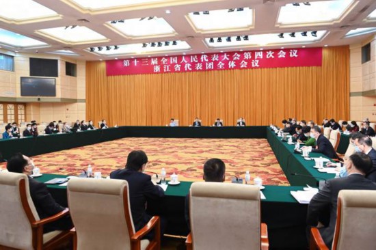 3月7日上午,浙江代表團舉行全體會議,傳達學習習近平總書記參加內蒙古代表團審議和參加全國政協醫藥衛生界、教育界委員聯組會重要講話精神以及《習近平在浙江》采訪實錄。省委書記、省人大常委會主任袁家軍發言。胡元勇 攝