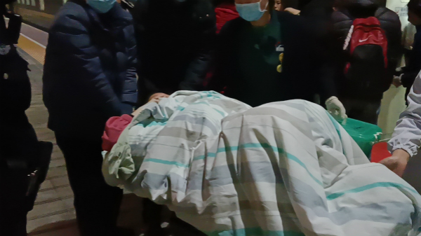21時51分,列車提前3分鐘到達宜昌東站,此時醫護人員、車站值班員早已在站臺等候。醫生查看孕婦情況后,表示“胎心正常,請不要擔心”。聽到這個信息,車廂工作人員懸著的心終于放下。大家齊心協力,快速將李女士送上救護車。