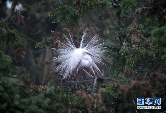 白鷺在南昌市象山森林公園內棲息(3月10日攝)。(萬象)