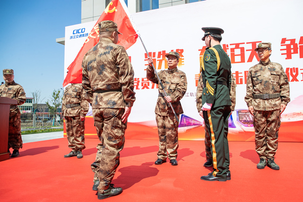 3月22日,浙江軌道集團海寧分公司舉行了“學黨史、當先鋒、奮戰百天、爭創一流”暨黨員先鋒隊和青年突擊隊授旗儀式。吳俊峰攝