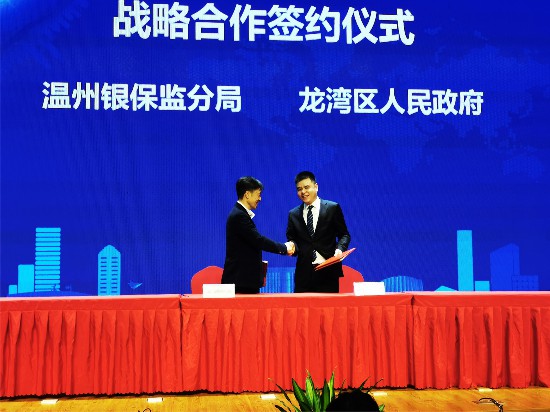 龍灣區人民政府與溫州銀保監分局現場簽約。王策攝