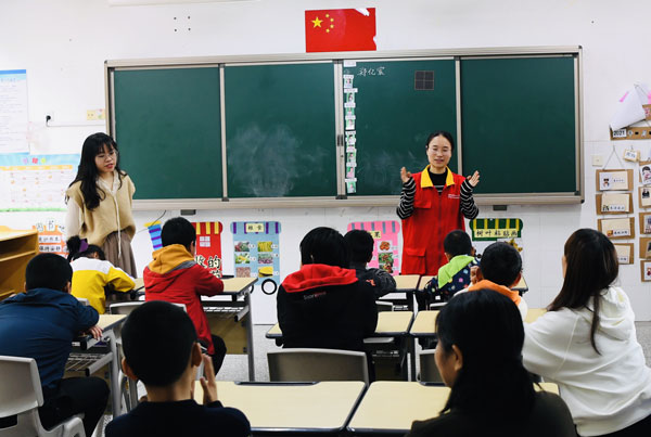 “愛心媽媽”陪孩子們做游戲。鄭玉蓮攝