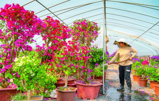 眼下,在金華金義新區赤松鎮高塘村的一個苗木大棚里,玫瑰紅、中國紅、大花紫、四季紅燈等各種顏色的盆栽三角梅開得正旺。種植戶宋曉潔說,她家種了26畝地的苗木,其中三角梅主要銷往杭州、寧波、上海、江蘇、山東等地的花木市場。小的盆栽三角梅一盆幾十至幾百元,大的一盆賣萬元以上,生意紅火。(時寬兵)