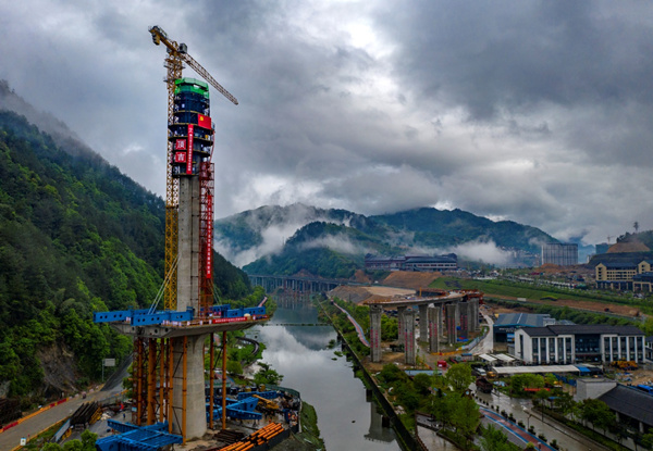 4月19日上午,浙江交通集團景文高速控制性工程——景寧高架橋86米高的主塔順利封頂。該工程于去年4月6日首次澆筑,建成后將成為麗水景寧的“新地標”。