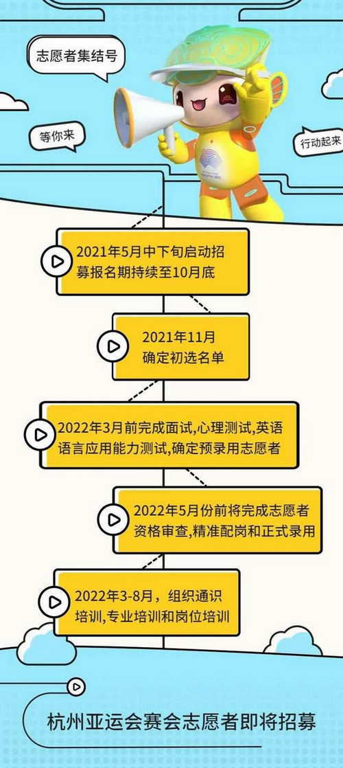 杭州亞組委將于今年5月中下旬啟動賽會志愿者全球招募,面向全社會發布招募通告。