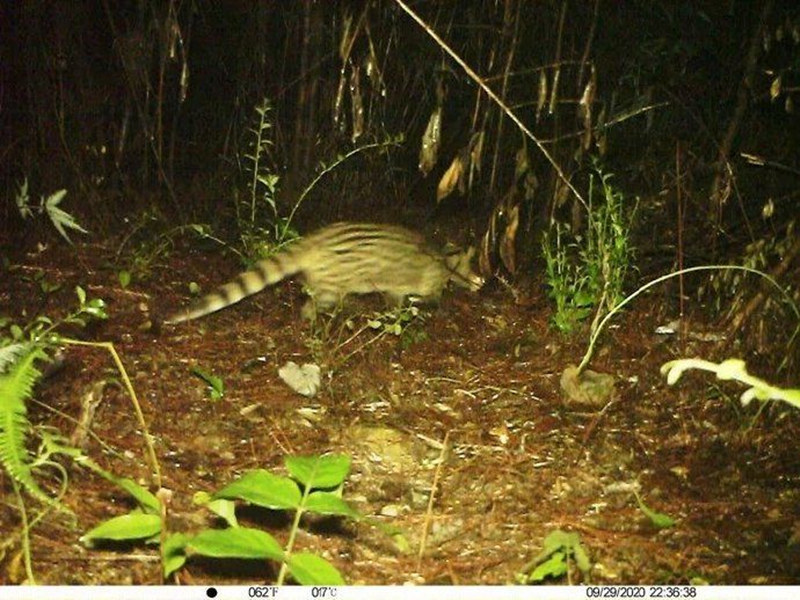 紅外相機捕捉到的小靈貓影像。烏巖嶺自然保護區管理中心供圖