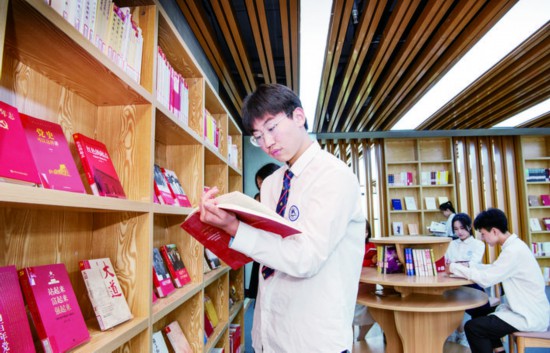 4月27日,在金華廣播電視大學(浙江商貿學校)圖書館里,師生們在黨史學習教育專欄認真閱讀書籍。黨史閱讀專欄位于該校圖書館三樓,集中陳列黨史類書籍800余冊。據了解,該校開展了形式多樣、豐富多彩的黨史學習教育閱讀推廣活動,如在“朗讀亭”平臺發布“建黨百年”“黨風黨建”“紅色家書”等朗讀經典篇章,定期在學校微信公眾號發布優秀朗誦作品等。(時寬兵)