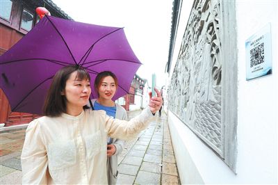 人們正在掃“文化碼”,聆聽景點的語音介紹。王潔涵攝