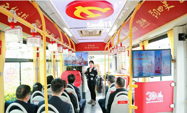 浙江軌道集團員工參觀上!八氖穼W習巴士”。陳思攝