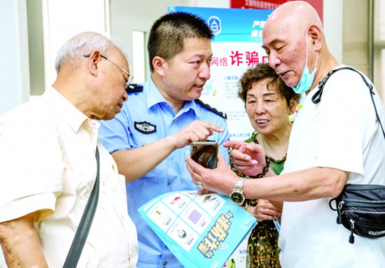5月17日,金華市區城中街道西市街社區聯合金華婺城公安分局城中派出所等,在社區小課堂上,向西市街商圈商戶和居民開展防范網絡詐騙宣傳,講解如何識別網絡詐騙行為,遇到網絡詐騙時,如何配合公安部門快速止損。(時寬兵)