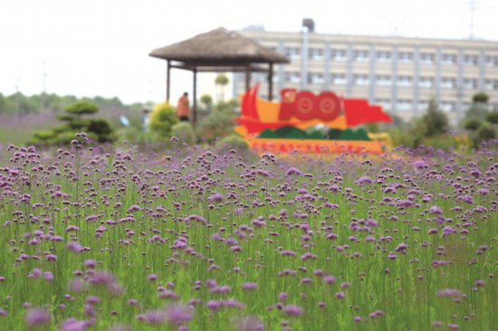 5月19日,嘉興桐鄉經濟開發區(高橋街道)一處浪漫的馬鞭草花海吸引了不少市民前往打卡;ê5膬蓚仁沁B綿的高大樹木,行人通過碎石步道,在隨風搖曳的花海中蜿蜒而過。(成杰)
