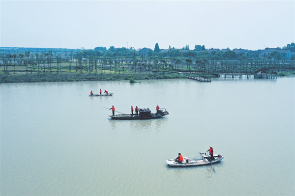 湖州南潯區菱湖鎮日前組織“六老”民間“河長”開展集體巡河活動。他們來到后莊漾省級濕地公園和羅角梗養殖尾水示范園區,清理水中雜物,勘察水質,交流治水經驗。(王迅、施莉娜)