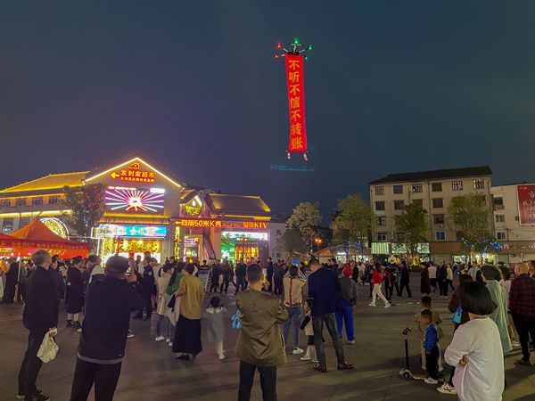 利用無人機宣傳反詐信息。龍泉公安供圖