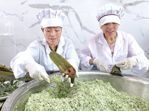 端午臨近,粽子也漸漸熱銷起來。近年來,愛好美食的金華東陽人在粽子食材上不斷求新求變。取粽葉,放糯米、鮮肉、鴨蛋黃,再放糯米,擰、壓、綁……5月27日,在金華東陽城區江北街道一家粽子店里,店員們正在包一種綠色的粽子。店鋪負責人陳女士介紹,粽子之所以是綠色的,是因為加進了新鮮的鐵皮石斛汁。鐵皮石斛味微甜,有天然香氣,同時有較高的藥用價值。幾年前,陳女士嘗試著將石斛汁與粽子相結合,受到食客的好評,這些年名氣漸響,每逢端午節,該店鋪都會收到萬余只石斛粽子訂單,供不應求。(董超毅)