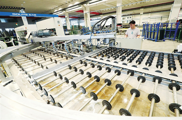 位于湖州德清縣禹越鎮的浙江三星新材股份有限公司自動化生產車間內,工作人員連日來趕制一批出口美國的鋼化玻璃。今年以來,該企業投入6400萬元擴增智能化生產線,加速推進智慧車間建設,提升產品競爭力。(王樹成)