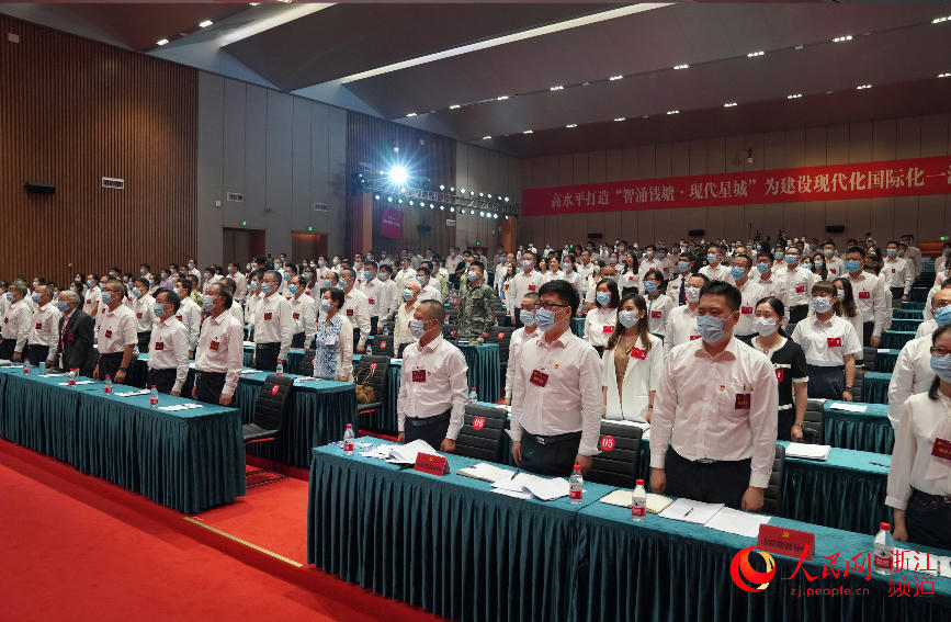 中國共產黨杭州市錢塘區第一次代表大會開幕。錢塘區委宣傳部供圖