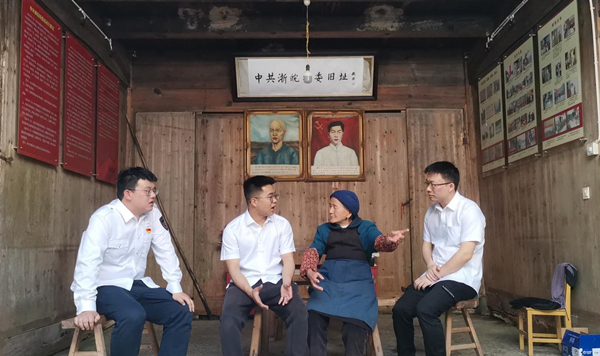 開化縣煙草專賣局青年黨團員聆聽林翠娥老人講述革命故事。鄭丹妮攝