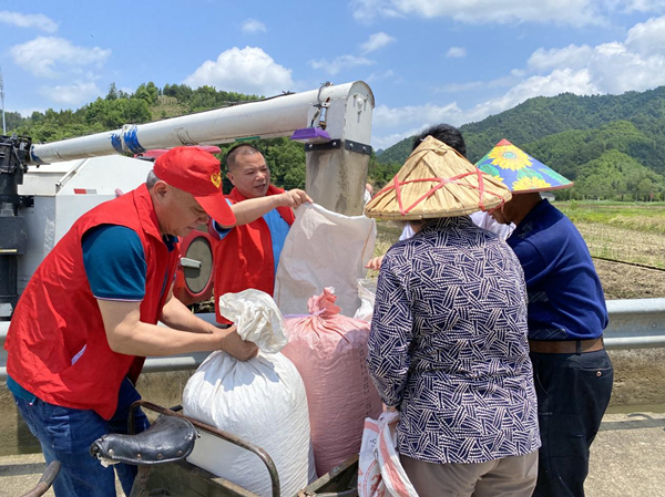 開化縣煙草專賣局黨員幫助菜農采收油菜籽。何文軒攝