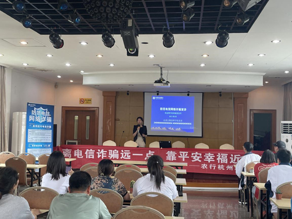 農行杭州城西支行員工開展電信詐騙專題講座。農行杭州城西支行供圖