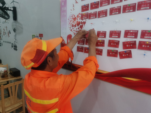 6月8日中午,溫州蒼南縣礬山鎮文昌路252號的一家面館又熱鬧了起來,幾位穿著橘紅色工作服的環衛工人進入面店,在墻上摘下一張卡片交給店家,不多久,一碗熱騰騰的免費愛心面條就端到了他們面前。