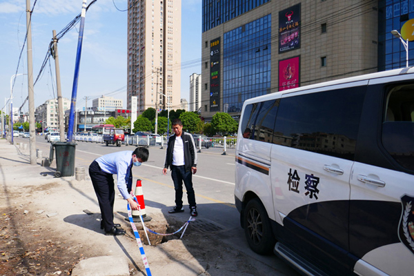 發現道路窨井蓋缺失,檢察官第一時間開展應急處置。