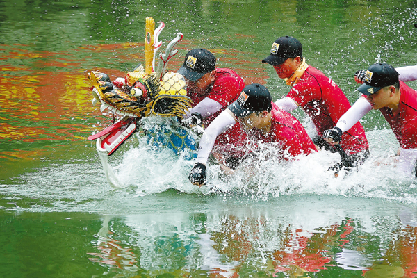 6月14日,2021中華傳統龍舟全球競演暨第九屆公羊杯龍舟大賽(杭州站)激情開賽,來自北京、上海、陜西、寧夏及浙江各地的公羊會隊員們在水清岸綠的上塘河沈塘灣河段擂鼓擊槳、破浪競渡,吸引了眾多市民在沿岸觀賞喝彩,共襄佳節,同祈安康。(李忠)