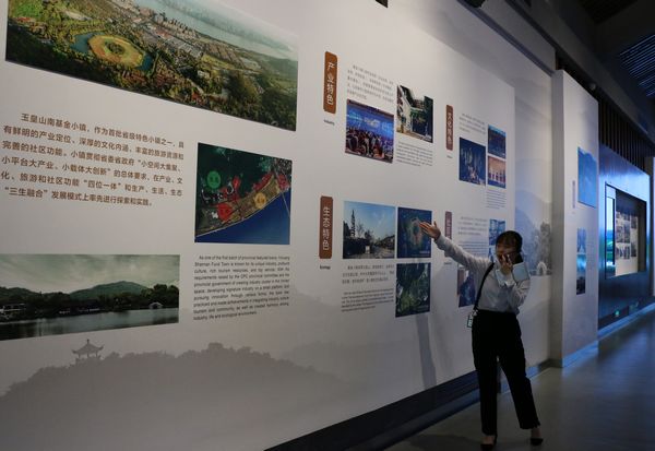 講解員正在講解玉皇山南基金小鎮的故事。人民網 王麗瑋攝